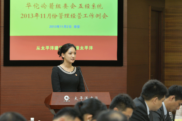 11月2日,华佗论箭组委会五经系统2013年11月份管理经营工作例会在淮安召开。苏商集团董事局主席、太平洋商学院院长严介和,华佗论箭组委会、太平洋建设董事局主席、CAO严昊,太平洋建设CEO严宝车,苏商资本董事局副主席、CEO武江,华佗论箭组委会CEO龚麟以及各下属集团董事局主席参加了会议并现场发言。苏商集团组织部分优秀员工赴淮安参加了会议。