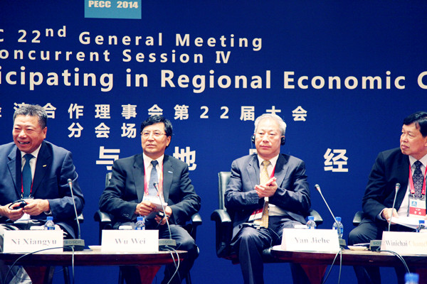 9月10日,备受国际瞩目的“太平洋经济合作理事会(PECC)第22届大会”在京拉开帷幕。来自中国、加拿大、澳大利亚等多个国家的政界要员、商界翘楚、学界巨擘出席活动,围绕“2014年及未来亚太经济合作之路”展开探讨。严院长作为中国企业家杰出代表应邀出席会议第四分论坛并就“中国民企海外投资”发表演讲。